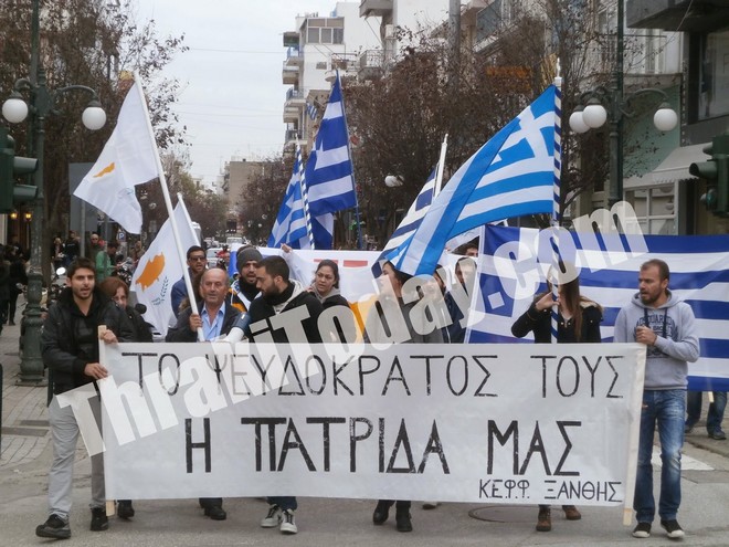Πορεία διαμαρτυρίας για την μαύρη επέτειο της ανακήρυξης του ψευδοκράτους πραγματοποίησαν το πρωί του Σαββάτου (15/11) ο Σύλλογος Κυπρίων και η Φοιτητική Ένωση Κυπρίων στην Ξάνθη.