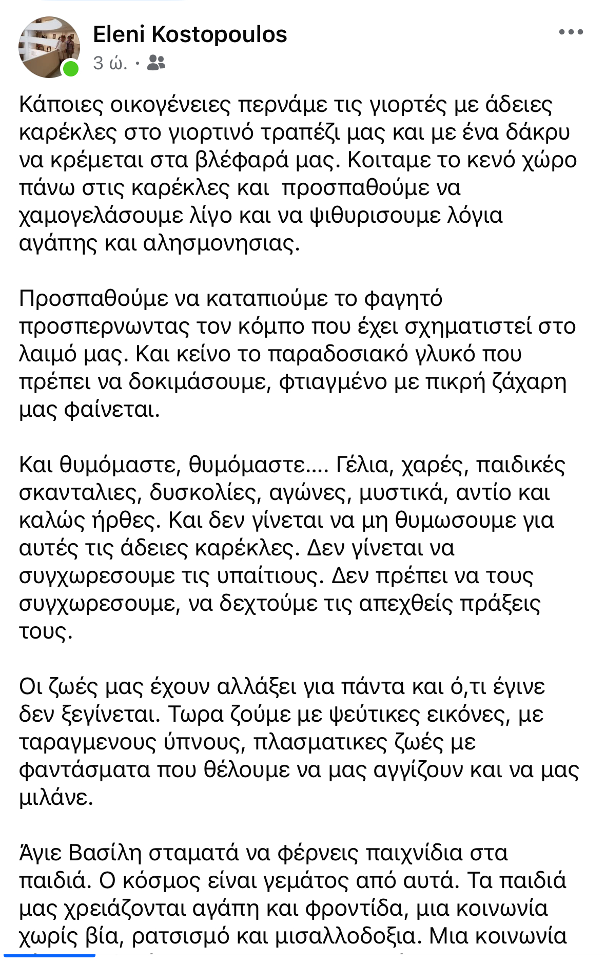 Η ανάρτηση της Ελένης Κωστοπούλου:
