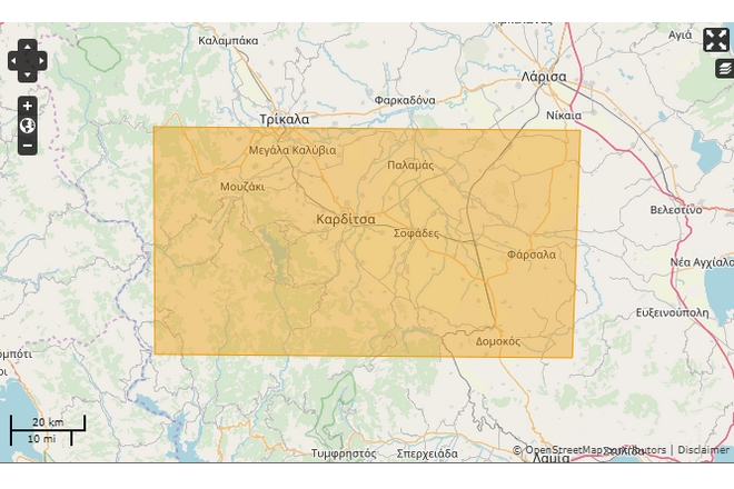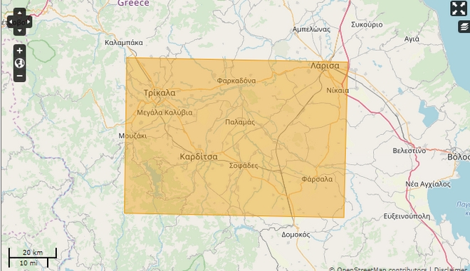 Χάρτης σκιαγράφησης των πλημμυρών στην Καρδίτσα: