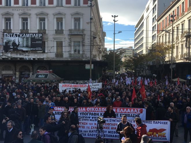 Στις 11.00 στην πλατεία Κλαυθμώνος ξεκίνησε την κινητοποίησή της η ΓΣΕΕ η οποία καλεί όλους τους εργαζόμενους, τους ανέργους και τους συνταξιούχους, στην 24ωρη γενική απεργία με κεντρικό σύνθημα «απεργούμε – αγωνιζόμαστε – διεκδικούμε».