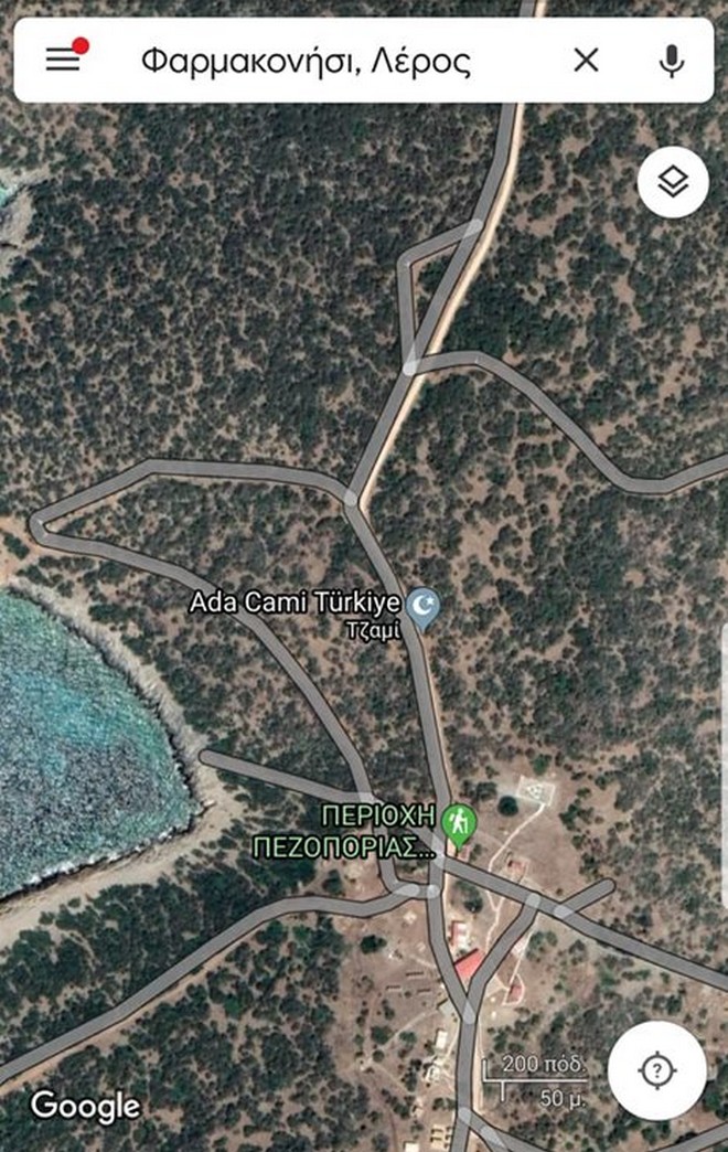 Τζαμί στο Φαρμακονήσι «φύτρωσαν» Τούρκοι στους χάρτες της Google. Πρόκειται για το τζαμί «Ada Cami Turkyie», το οποίο υποτίθεται ότι βρίσκεται στο βόρειο τμήμα του ακριτικού νησιού.