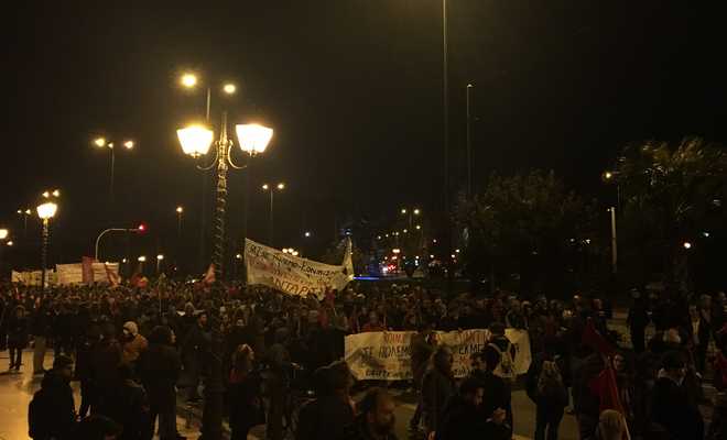 Διμοιρίες των ΜΑΤ προπορεύονταν της διαδήλωσης, που ολοκληρώθηκε χωρίς επεισόδια λίγο πριν τις 9 το βράδυ.