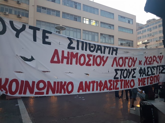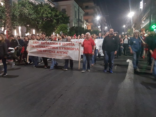 Στη συγκέντρωση είχαν καλέσει η οικογένεια του Παύλου Φύσσα, η ΚΕΕΡΦΑ και άλλες κινήσεις πολιτών, κόμματα και συνδικάτα
