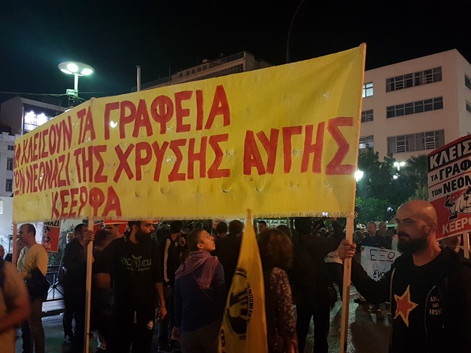 «Η ναζιστική συμμορία της Χρυσής Αυγής τολμά να μαζέψει τους υπόδικους δολοφόνους του Παύλου Φύσσα για να πραγματοποιήσει δήθεν εγκαίνια στα νέα γραφεία της στον Πειραιά, παρουσία του αρχηγού της Μιχαλολιάκου, την Παρασκευή 20 Οκτώβρη.