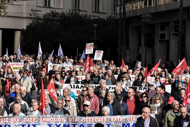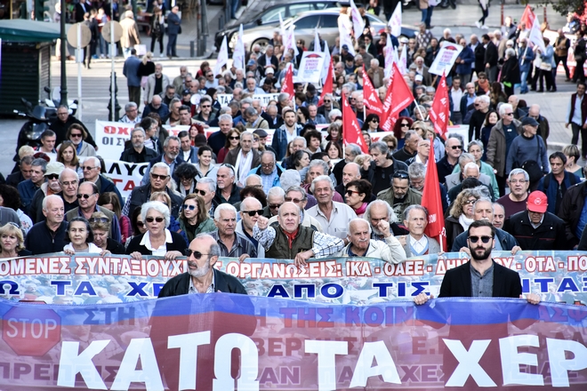 Ολοκληρώθηκε το συλλαλητήριο στο κέντρο της Αθήνας με κεντρικό σύνθημα "Κάτω τα χέρια από την Κοινωνική Ασφάλιση".