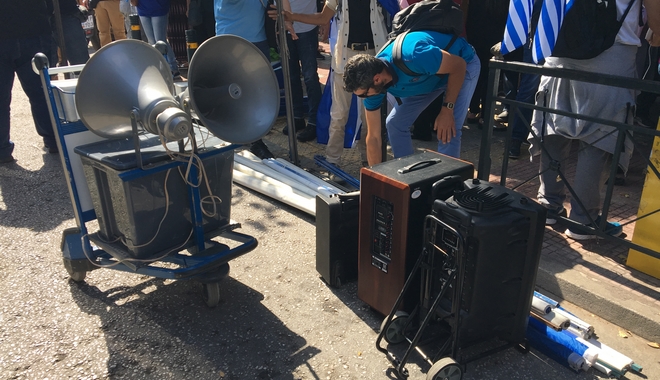 Οι διαδηλωτές κρατούν ελληνικές σημαίες, ενώ έχουν μαζί τους και μικροφωνική εγκατάσταση και παρατάσσονται από νωρίς έξω από τα δικαστήρια, φωνάζοντας συνθήματα ενάντια στη δίωξη του αρχηγού της Ελλήνων Συνέλευσις ο οποίος έχει προγραμματιστεί να φτάσει στις 11 στο χώρο των δικαστηρίων.