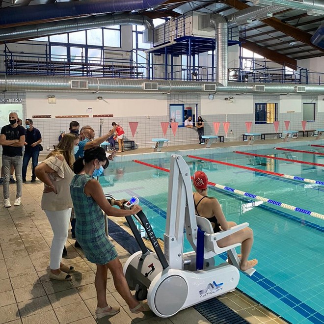 Ο Οργανισμός Πολιτισμού Αθλητισμού και Νεολαίας του Δήμου Αθηναίων τοποθέτησε αναβατόρια τελευταίας τεχνολογίας για άτμα με κινητικά προβλήματα στα κολυμβητήρια Γουδή και Κολοκυνθού