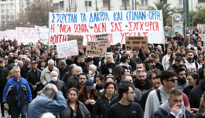 Με αστυνομική καταστολή στιγματίστηκε η μαζικότατη πορεία που έλαβε χώρα στην Αθήνα για την τραγωδία στα Τέμπη, με χιλιάδες κόσμου να ζητά απονομή δικαιοσύνης. Οι αστυνομικές δυνάμεις προχώρησαν σε επίθεση εναντίον μπλοκ διαδηλωτών, συγκεκριμένα της ΣΒΕΟΔ (Συνέλευση Βάση Εργαζομένων Οδηγών Δικύκλου), στο κάτω μέρος της πλατείας Συντάγματος, και ακολούθησε ρίψη μολότοφ από κουκουλοφόρους, με αποτέλεσμα ο κόσμος να “σπάσει” προς τα Προπύλαια.