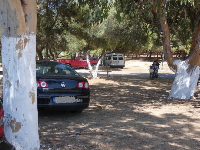 Τροχόσπιτα, φορτηγά, αυτοκίνητα και κάθε λογής όχημα μπορούν να μπουν “ανενόχλητα” στο άλσος των Αγίων Αποστόλων και στην αναζήτηση ενός σκιερού σημείου να καταπατήσουν δημόσιο χώρο και μάλιστα δασική έκταση.