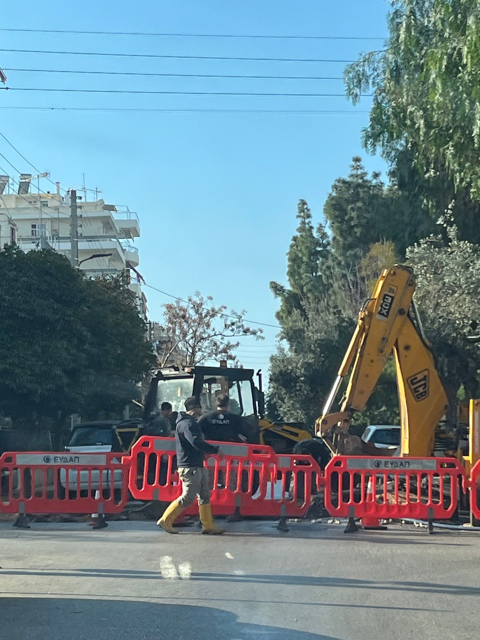 Σύμφωνα με το MEGA, η βλάβη στον αγωγό θα αργήσει να αποκατασταθεί, ενώ στην τρύπα που έχει ανοίξει στο οδόστρωμα βρίσκεται πάνω μια μπουλντόζα για να περιορίσει τη ροή του νερού.