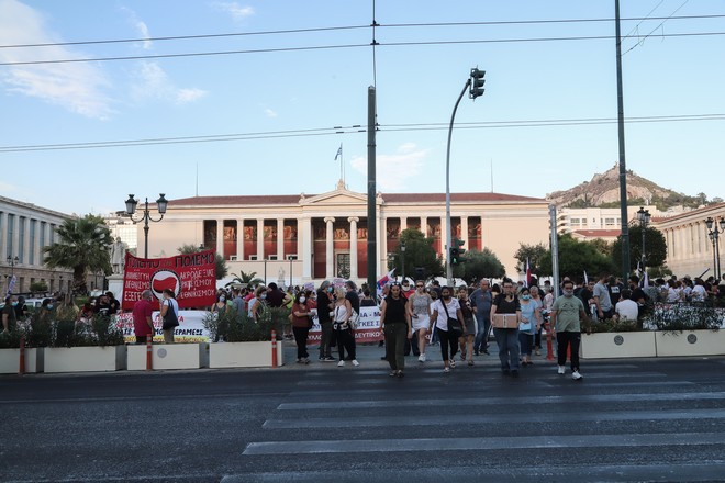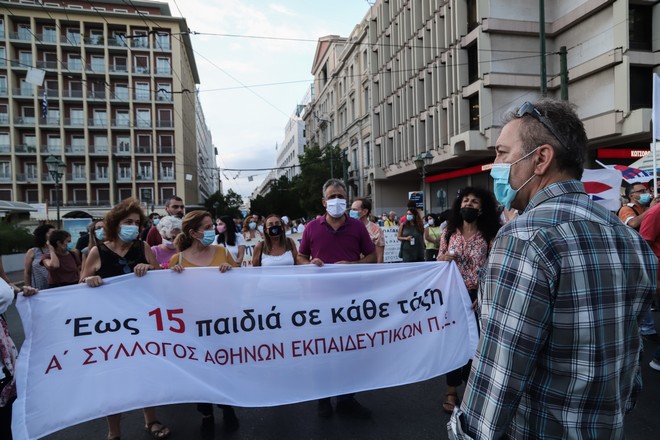 Με κεντρικό σύνθημα «αίθουσες, προσλήψεις, δωρεάν παιδεία, πάρτε μέτρα για την πανδημία» οι διαδηλωτές και οι διαδηλώτριες συγκεντρώθηκαν αρχικά στα Προπύλαια και κατευθύνονται προς τη Βουλή ζητώντας μεταξύ άλλων, άμεσα μέτρα ασφάλειας και υγιεινής για την έναρξη και λειτουργία των σχολείων, μείωση του αριθμού των μαθητών ανά τμήμα καθώς και μαζικούς διορισμούς μόνιμων εκπαιδευτικών.