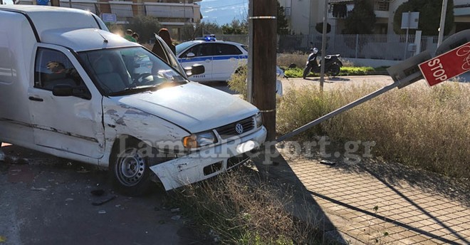 Πανικός στη Λαμία: Πέρασε το ‘στοπ’ και συγκρούστηκε με βαν που μετέφερε φιάλες υγραερίου