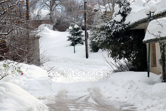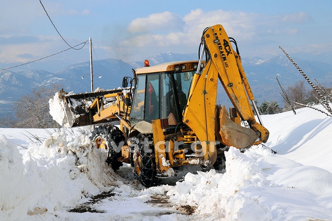 Πάνω από 1 μέτρο χιόνι στην Καρυά – Αγώνας δρόμου για τους απεγκλωβισμούς