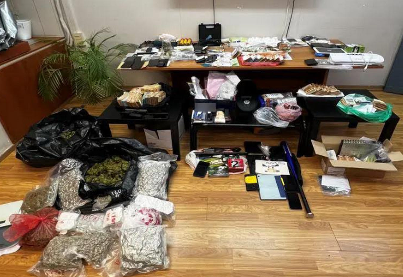 Σε έρευνες που πραγματοποιήθηκαν, σε οικίες, επιχειρήσεις – εταιρείες και οχήματα, βρέθηκαν και κατασχέθηκαν 9 κιλά και 576,5 γραμμάρια κάνναβης (SKUNK, ακατέργαστη, κατεργασμένη, φύλλα), 1.450 δενδρύλλια κάνναβης, 1 κιλό και 351,1 γραμμάρια κοκαΐνης, 6 ζυγαριές, τρίφτης, πλήθος διαρρηκτικών εργαλείων, ρολόι μεγάλης χρηματικής αξίας, 4 πιστόλια, 463 φυσίγγια, δίκανη καραμπίνα, σιγαστήρας πιστολιού, κάνη όπλου, 6 γεμιστήρες, 16 μαχαίρια, 2 κλομπ, σιδερογροθιά, μεταλλικό ρόπαλο, 4 φωτοβολίδες, 13 κροτίδες, 49 συσκευές τηλεφωνίας, 5 λάπτοπ, 3 τάμπλετ, πλαστό δελτίο ταυτότητας, καταγραφικό με σκληρό δίσκο, μετρητής χρημάτων, περισσότερα από 30 Ι.Χ. και 7 μοτοσικλέτες, 475.300 ευρώ, 160 δολάρια Αυστραλίας, 2 senti Γκάνας, 140 σλοτ Πολωνίας, 160 Dirhma Η.Α.Ε., 7.400 ΛΕΚ Αλαβνίας, χρυσή λίρα.