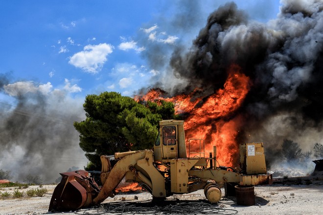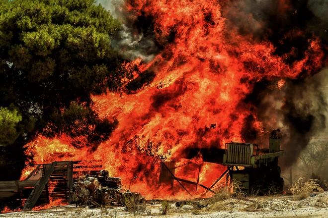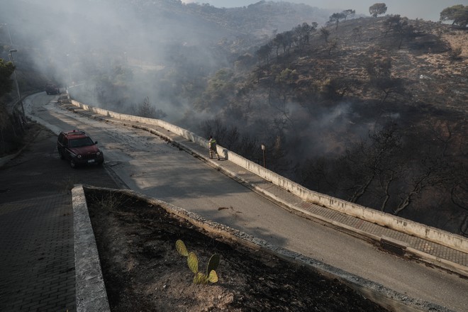 Αυτή την στιγμή δεν φαίνεται να υπάρχει ένα αρραγές πύρινο μέτωπο αλλά δεκάδες εστίες που ριπαίοι άνεμοι συνεχώς αναζωπυρώνουν και δημιουργούν νέα προβλήματα.