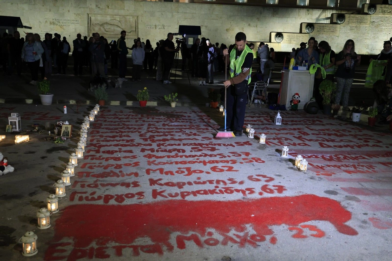 Ο Πάνος Ρούτσι έφτασε στο Σύνταγμα, αφού νωρίτερα είχε προαναγγείλει πως θα βρίσκεται κάθε βράδυ εκεί πλάι στην ομάδα “Μέχρι Τέλους” ώστε να μην σβηστούν τα ονόματα των θυμάτων των Τεμπών