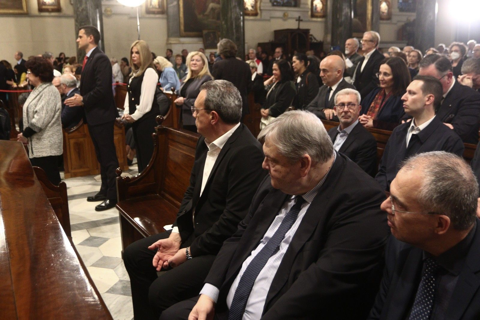 Σε κλίμα κατάνυξης, παρέστησαν, μεταξύ άλλων, ο πρώην Πρόεδρος της Δημοκρατίας, Προκόπης Παυλόπουλος, ο υπουργός Εθνικής ‘Αμυνας, Νίκος Δένδιας, η υπουργός Παιδείας, Θρησκευμάτων και Αθλητισμού, Σοφία Ζαχαράκη, ο Παύλος Χρηστίδης, ως εκπρόσωπος του ΠΑΣΟΚ-ΚΙΝΑΛ, ο πρόεδρος του ΣΥΡΙΖΑ, Σωκράτης Φάμελλος, η πρώην υφυπουργός Μετανάστευσης και Ασύλου, Σοφία Βούλτεψη, ο πρώην αντιπρόεδρος της κυβέρνησης της Ελλάδος, Ευάγγελος Βενιζέλος.