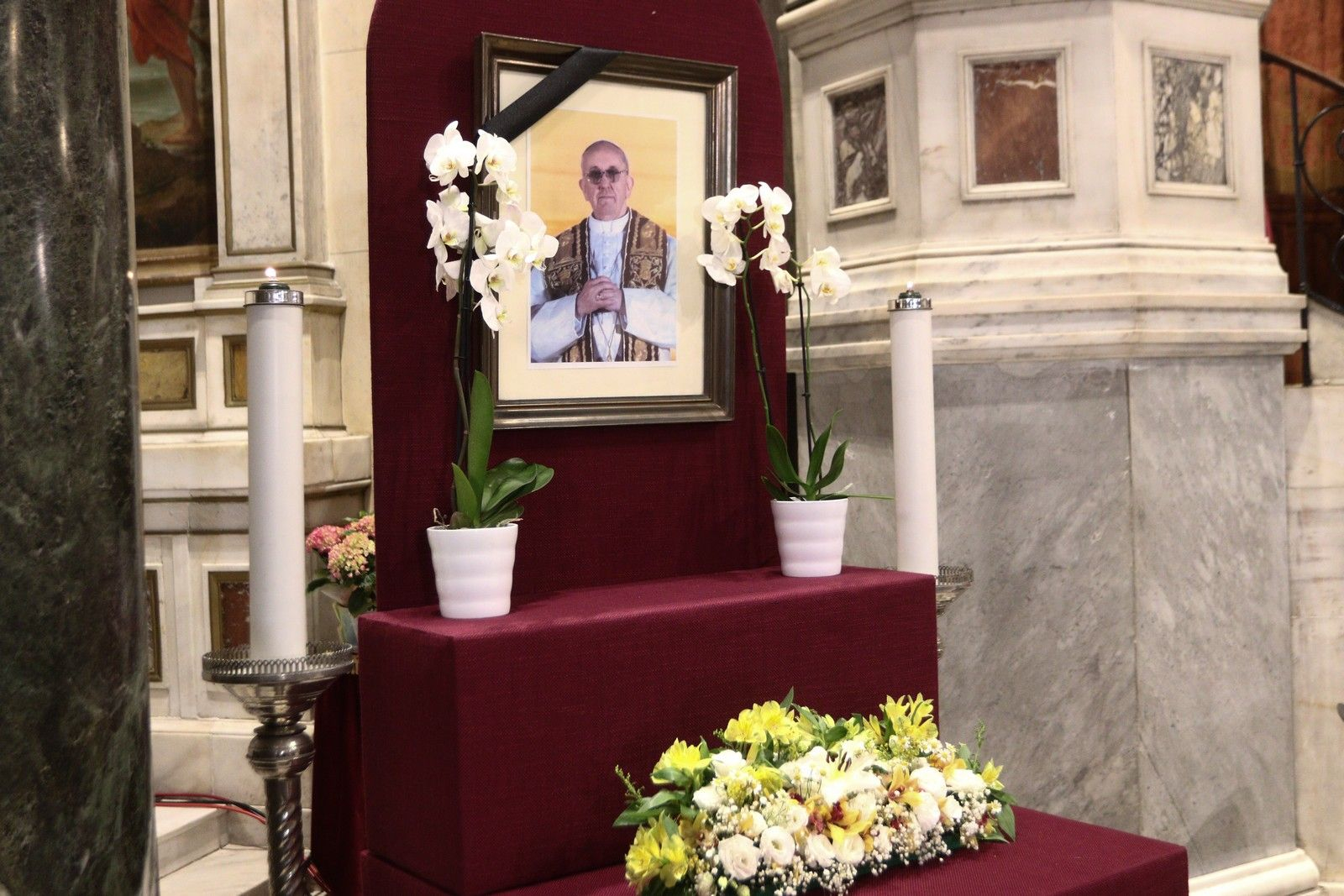 Παρουσία πλήθους κόσμου τελέσθηκε στις 18.30 η επιμνημόσυνη Αρχιερατική Θεία Λειτουργία υπέρ αναπαύσεως της ψυχής του μακαριστού Πάπα Φραγκίσκου στον Ιερό Καθεδρικό Ναό του Αγίου Διονυσίου του Αρεοπαγίτου Καθολικών.