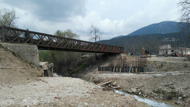 Η γέφυρα τοποθετήθηκε από τη ΜΟΜΚΑ μετά από έγκριση του ΓΕΕΘΑ και αντικαθιστά εκείνη που κατέρρευσε λόγω της σφοδρής κακοκαιρίας, που έπληξε την περιοχή.