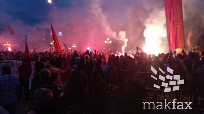 Τα Σκόπια βρίσκονται σε διαρκή ένταση με συνεχείς διαδηλώσεις που διοργανώνονται κατά της συμφωνίας για αλλαγή του ονόματος, ενώ η κυβέρνηση βρίσκεται σε ανοιχτή ρήξη με τον πρόεδρο. Χθες, είχαμε τη δεύτερη ημέρα κινητοποιήσεων από οπαδούς της αντιπολίτευσης, υπό δρακόντεια μέτρα ασφαλείας. Κύριο αίτημα των διαδηλωτών είναι να μην αλλάξει το Σύνταγμα της χώρας, ενώ δεν υπάρχει ικανοποίηση για το προτεινόμενο όνομα. Πολλοί διαδηλωτές φώναζαν το όνομα του Ιβανόφ, όπως μεταδίδει το πρακτορείο makfax.com.
