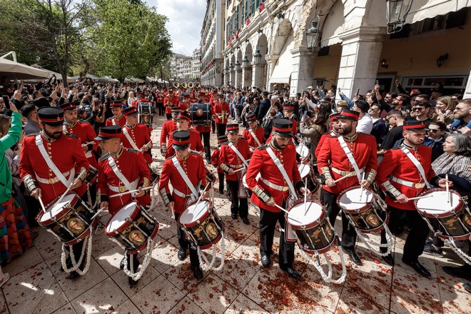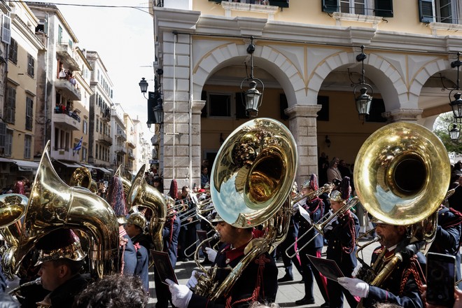 Χιλιάδες κόσμου κατέκλυσε και φέτος το νησί της Κέρκυρας όπου αναβίωσαν μερικά από τα πιο παραδοσιακά έθιμα του Πάσχα και οι μουσικές από τις φιλαρμονικές και τις χορωδίες πλημμύρισαν τα καντούνια του νησιού.