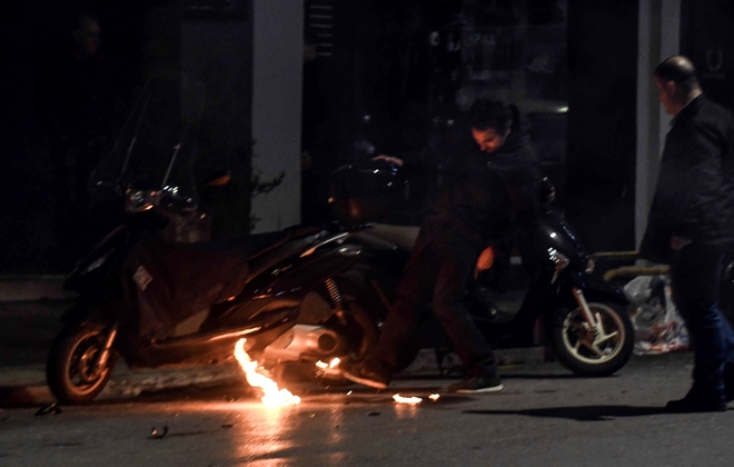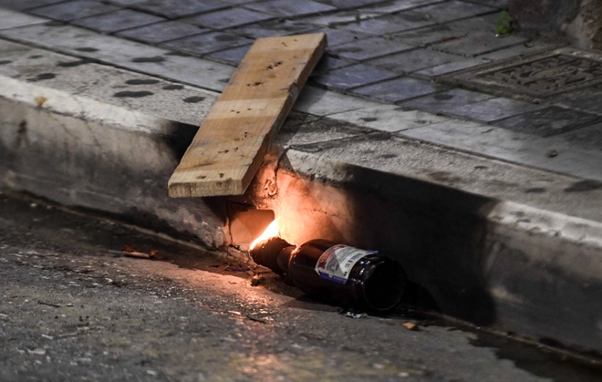 Νωρίτερα, άτομα που είχαν καλυμμένα τα χαρακτηριστικά τους και βρίσκονταν στο τέλος της πορείας, πέταξαν βόμβες μολότοφ και φωτοβολίδες εναντίον των αστυνομικών των ΜΑΤ που τους ακολουθούσαν.