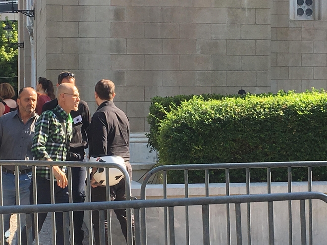 Πριν από λίγο επίσης έφτασαν ο μουσικοσυνθέτης Νίκος Κατσαρός και ο επιχειρηματίας Δημήτρης Μελισανίδης.