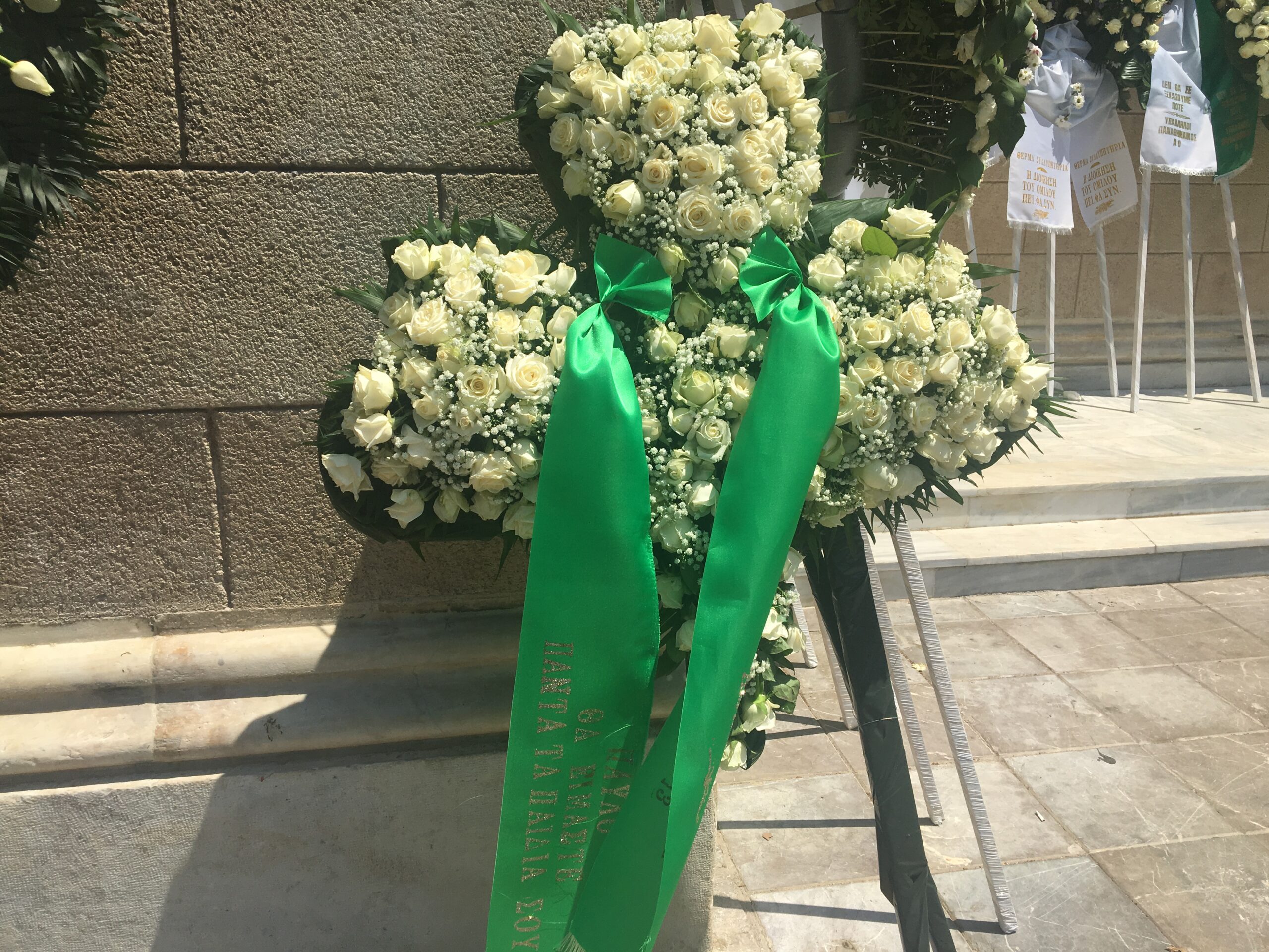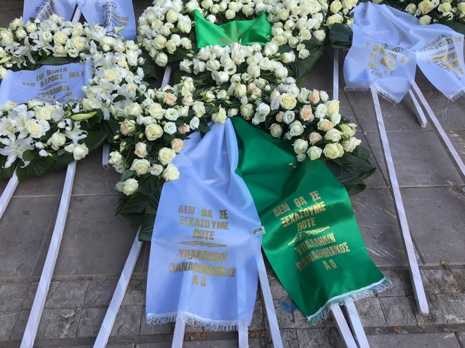 Επίσης στεφάνια έχουν στείλει ο Νίκος Γκάλης, ο Σωκράτης Κόκκαλης, ο Γιώργος Βαρδινογιάννης και διάφοροι σύνδεσμοι του Παναθηναϊκού.  Ένα από αυτά είναι σε σχήμα τριφυλλιού και γράφει «Θα είμαστε πάντα τα παιδιά σου. Θύρα 13 Αμπελοκήπων».