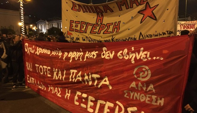 Το απόγευμα της Τρίτης πραγματοποιήθηκε στο κέντρο της Αθήνας η πορεία συλλογικοτήτων του αντιεξουσιαστικού χώρου και οργανώσεων της εξωκοινοβουλευτικής Αριστεράς.