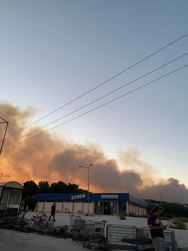 “Βγαίνω έξω και βλέπω εναέρια πάνω από το σπίτι και την φωτιά στα 4 χιλιόμετρα. Στάχτες και καπνός παντού, σε σημείο που δεν βλέπαμε. Ξεκινήσαμε πολύ γρήγορα την διαδικασία εκκένωσης, χωρίς να μας έχει έρθει κάποιο μήνυμα, όπως μας είχαν μάθει τα ΜΜΕ από τότε στο Μάτι. Τραβήξαμε τα έπιπλα, βγάλαμε τις κουρτίνες, βάλαμε βρεγμένες πετσέτες παντού και βρέξαμε τα πάντα γύρω από το σπίτι”.