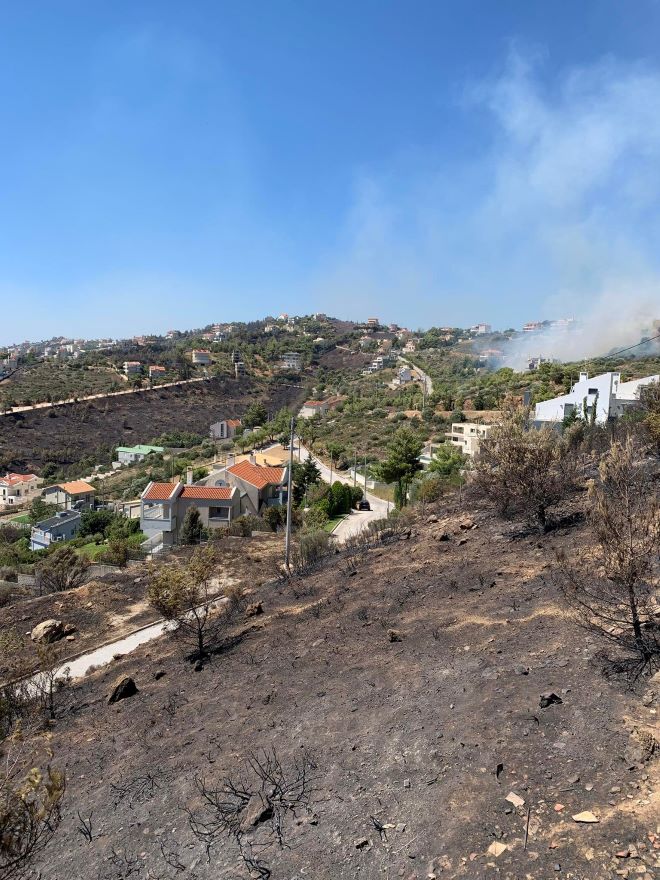 “Μείναμε στο πάρκινγκ μέχρι τις 6 το πρωί σε μια κατάσταση εξουθένωσης, δίψας και πείνας. Σκεφτήκαμε ότι για να κατέβηκε η φωτιά στην Παλλήνη, το Ντράφι θα έχει ηρεμήσει, όποτε γυρίσαμε πίσω. Όμως, δεν είχε ηρεμήσει. Γυρίσαμε ευτυχώς σε ένα σπίτι που δεν είχε καεί, παρόλο που τα γειτονικά οικόπεδα ήταν καμένα όπως και ο κήπος μας. Δηλαδή η φωτιά μας περικύκλωσε, αλλά για κάποιο λόγο σαν να πέρασε από πάνω μας. Γενικά το σπίτι δεν έχει ούτε νερό ούτε ρεύμα και δεν ξέρουμε πότε θα αποκατασταθούν”.