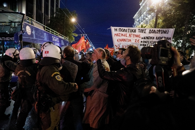 Την ίδια ώρα το ΜέΡΑ 25 καταγγέλλει οτι “ΜΑΤ επιτέθηκαν με πρωτοφανή βιαιότητα για να διαλύσουν την πορεία που πραγματοποιούνταν το απόγευμα στο κέντρο της Αθήνας, χτυπώντας λυσσαλέα και το πανό του ΜέΡΑ25 που συμμετείχε σε αυτή, μαζί με τους βουλευτές του κόμματος Κρίτωνα Αρσένη και Μαρία Απατζίδη”.