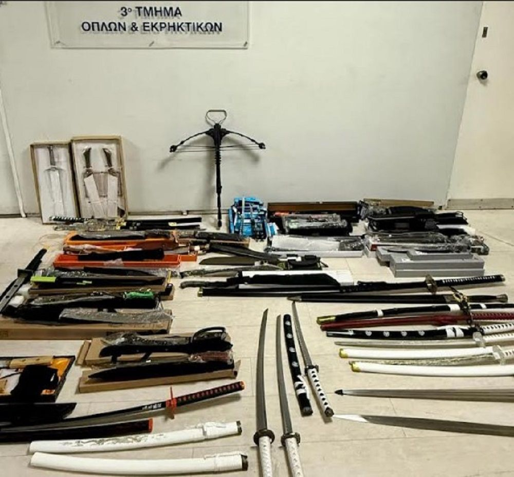 Στο πλαίσιο επιχειρησιακής δράσης που σχεδιάστηκε και υλοποιήθηκε από το Τμήμα Όπλων και Εκρηκτικών, στο εσωτερικό του καταστήματος βρέθηκαν συνολικά και κατασχέθηκαν 29 ξίφη, 33 μαχαίρια τύπου «ματσέτα», 43 μαχαίρια τύπου πεταλούδα, 15 μαχαίρια διαφόρων τύπων και βαλλίστρα.