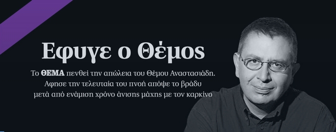 «Με αβάσταχτη οδύνη και ανείπωτο πόνο η οικογένεια της εφημερίδας μας αποχαιρετά τον εμπνευστή, δημιουργό, φίλο, συνάδελφο και πάνω από όλα αδελφό μας Θέμο.