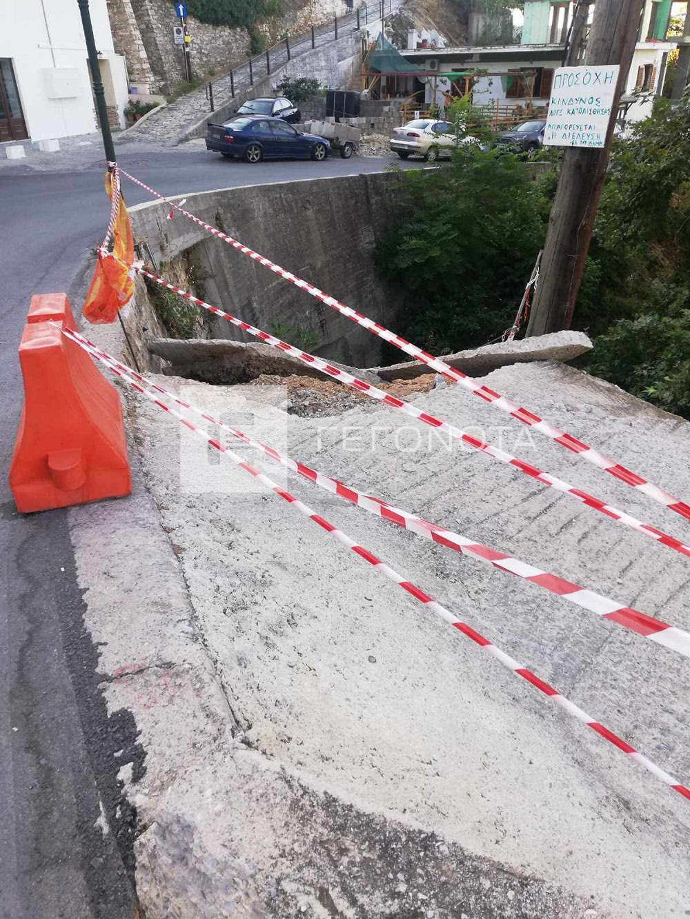 Το τμήμα του δρόμου που βρίσκεται στην είσοδο του πάρκινγκ, “έπεσε” στις 4 τα ξημερώματα, και το τμήμα που υποχώρησε “έσκασε” στο ρέμα. Από τύχη δεν υπάρχουν ζημιές σε 15 παρκαρισμένα αυτοκίνητα εντός του οικοπέδου του πάρκινγκ, ενώ με το πρώτο φως της ημέρας οι ιδιοκτήτες ξενώνων αντίκρισαν την εικόνα της καταστροφής.