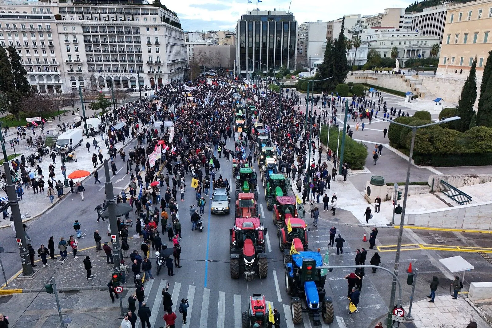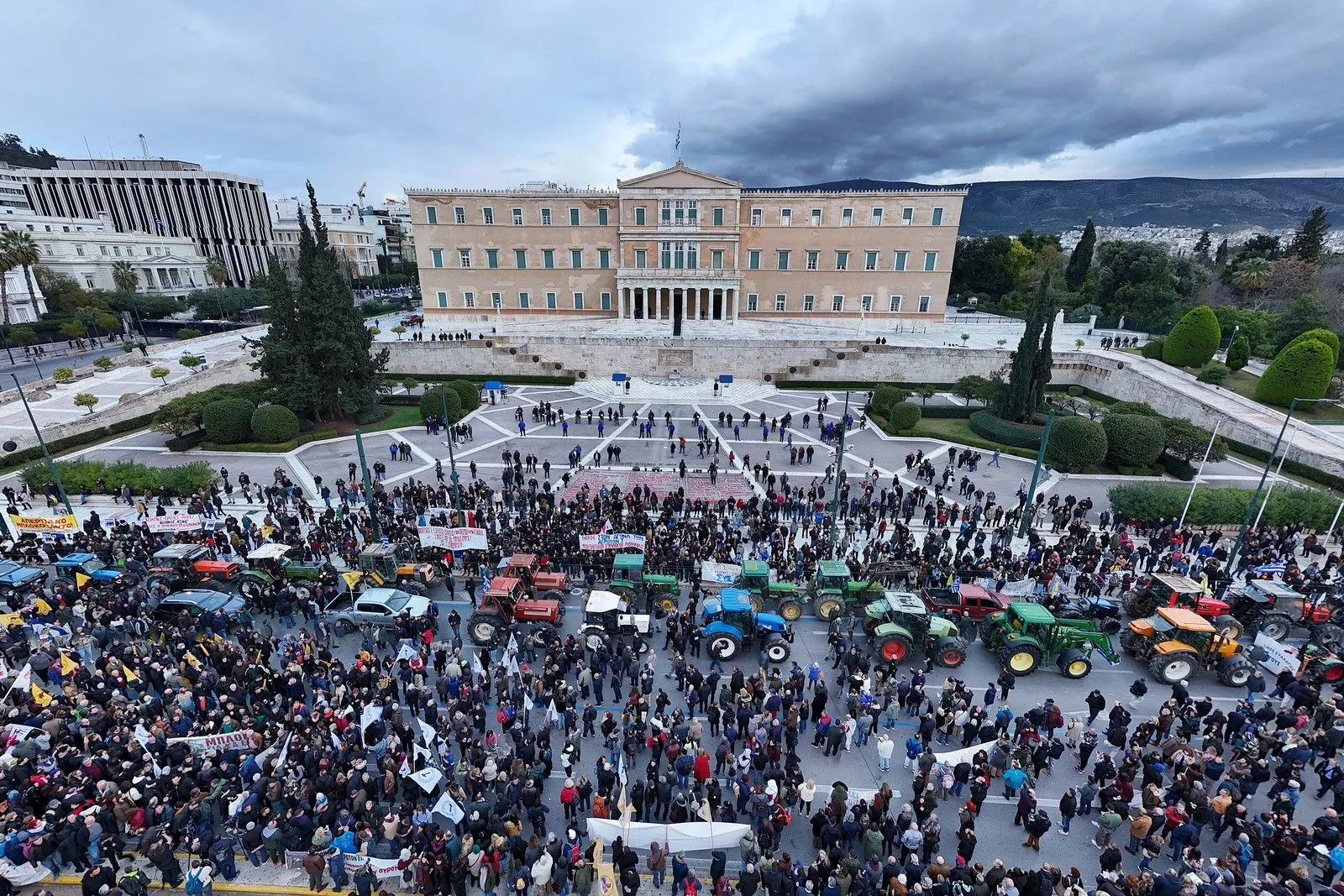 Δυναμική πανελλαδική συγκέντρωση στο κέντρο της Αθήνας, στην πλατεία Συντάγματος, πραγματοποίησαν το απόγευμα της Παρασκευής (13/2) αγρότες, κτηνοτρόφοι και μελισσοκόμοι από όλη τη χώρα, σταθμεύοντας, παράλληλα, δεκάδες τρακτέρ μπροστά στη Βουλή.