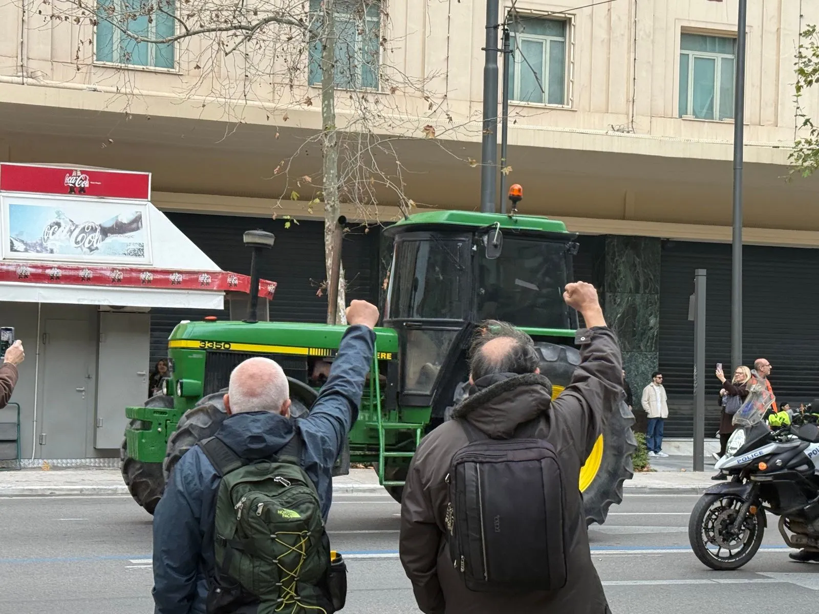 Σημειώνεται πως, οι αγρότες καταχειροκροτήθηκαν από τους πολίτες που διαδήλωναν νωρίτερα για τις συλλογικές συμβάσεις εργασίας.