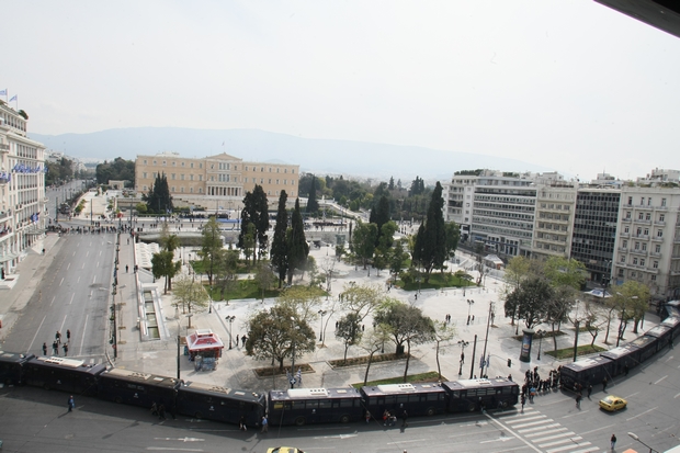 Η πλατεία Συντάγματος θα περικλειστεί από κάγκελα, ενώ θα υπάρχουν και ισχυρές δυνάμεις των ΜΑΤ που θα ελέγχουν την πρόσβαση.