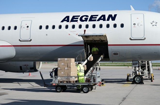 Την ίδια ώρα απογειώθηκε από το αεροδρόμιο “Ελευθέριος Βενιζέλος” αεροσκάφος της Aegean μεταφέροντας ανθρωπιστική βοήθεια προς την Ουκρανία.