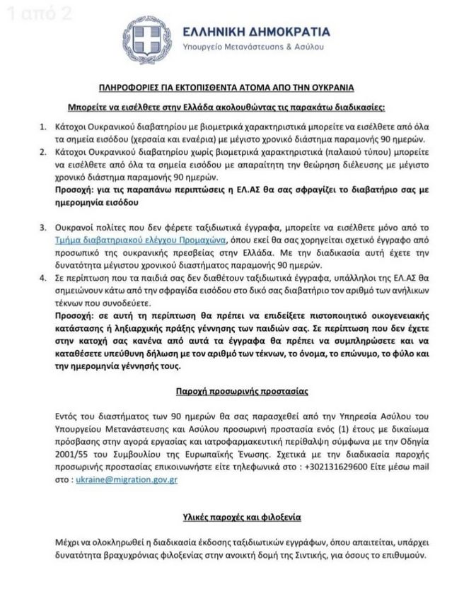 Το Υπουργείο Μεταναστευτικής Πολιτικής λέει μεγάλα λόγια για την υποδοχή που θα τύχουν οι Ουκρανοί πρόσφυγες από την ελληνική πολιτεία, ωστόσο στην πράξη δεν φαίνεται να διαφοροποιεί την έτσι και αλλιώς προβληματική προσέγγισή του στο εν γένει προσφυφικό ζήτημα.