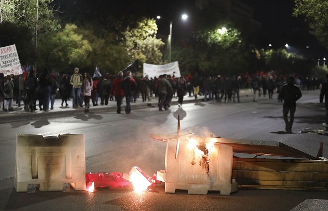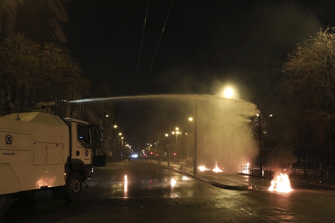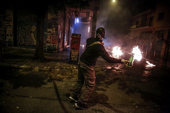 Έξω από την Πολυτεχνική Σχολή οι κουκουλοφόροι έστησαν πύρινα οδοφράγματα και εκσφενδόνισαν βροχή από βόμβες μολότοφ εναντίον των διμοιριών των ΜΑΤ, που με την σειρά τους απάντησαν με χρήση δακρυγόνων και χειροβομβίδων κρότου λάμψης. Από τα επεισόδια έχουν γίνει προσαγωγές χωρίς όμως ακόμα να έχει αποσαφηνιστεί ο αριθμός τους.
