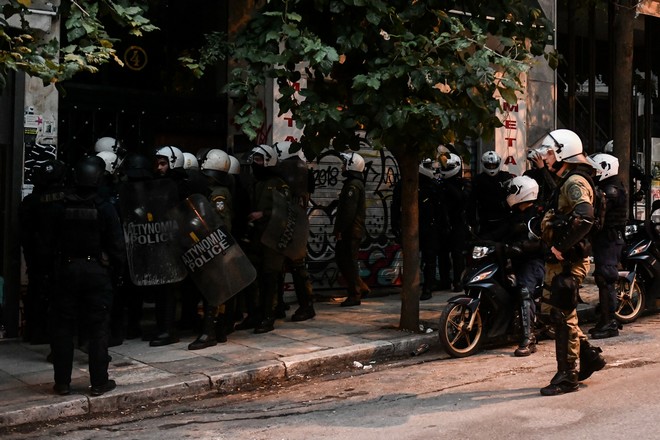 Μέχρι στιγμής έχουν σημειωθεί έξι συλλήψεις ατόμων και δύο προσαγωγές σε δώμα ταράτσας κτιρίου επί της οδού Σπ. Τρικούπη στα Εξάρχεια. Στο σημείο βρέθηκαν βόμβες μολότοφ, αντιασφυξιογόνες μάσκες, γάντια, πέτρες και άλλα αντικείμενα