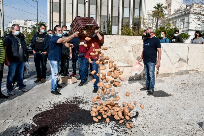 Πορεία προς τη Βουλή πραγματοποίησαν οι πληγέντες των φυσικών καταστρογών. Σε μια συμβολική κίνηση άδειασαν στο πλάι της εισόδου του κοινοβουλίου πατάτες και σταφίδες.