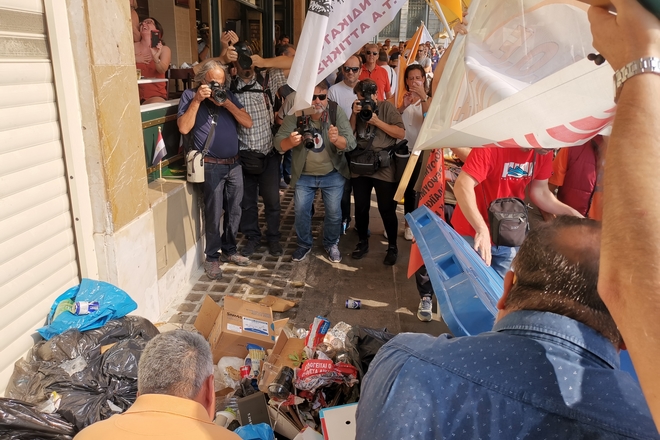 Αξίζει να σημειωθεί πως οι εργαζόμενοι πέταξαν σκουπίδια έξω από το Υπουργείο Εσωτερικών: