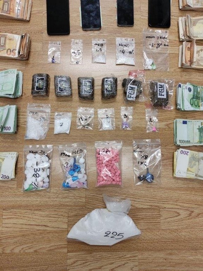 Μετά από έλεγχο που πραγματοποιήθηκε στο αυτοκίνητο και από έρευνα στην οικία του βρέθηκαν από αστυνομικούς της Δίωξης Ναρκωτικών και κατασχέθηκαν συνολικά 1.513.555 ευρώ και 336 δολαρίων Η.Π.Α., 275 γραμμ. κοκαΐνη, 495,5 γραμμ. κατεργασμένης και 0,7 γραμμ. ακατέργαστης κάνναβης, 37,9 γραμμ. κρυσταλλική μεθαμφεταμίνη, 131 δισκία ecstasy, τρία φαρμακευτικά δισκία, αυτοκίνητο, πιστόλι κρότου, 267 φυσίγγια κρότου, χρηματοκιβώτιο, 4 αυτοσχέδιες νάιλον συσκευασίες και 4 κινητά τηλέφωνα.
