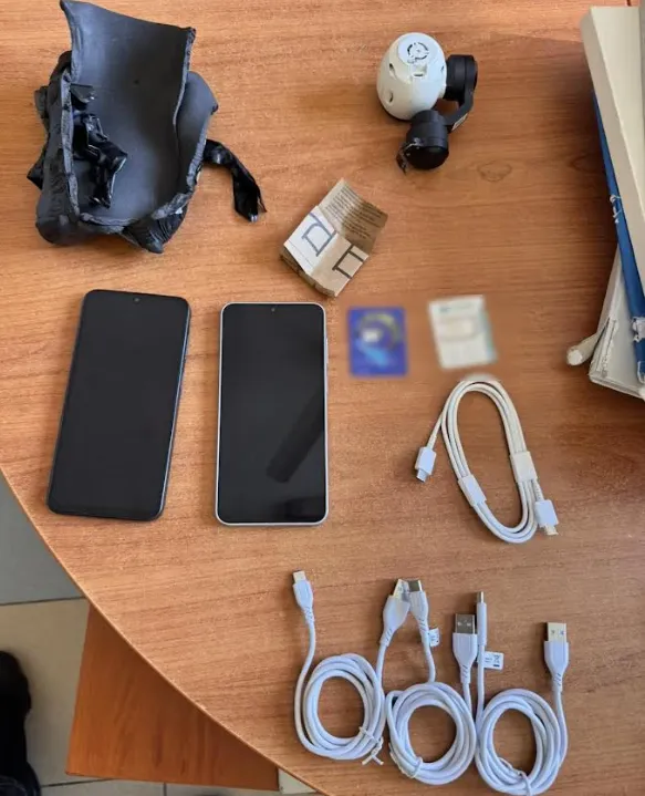 Ακολούθησαν έρευνες σε θαλάμους της οικείας πτέρυγας, όπου βρέθηκαν και κατασχέθηκαν 2 συσκευές κινητής τηλεφωνίας και 2 κάρτες sim, ενώ κατά την περισυλλογή του μη επανδρωμένου αεροσκάφους, βρέθηκαν 4 καλώδια φόρτισης.