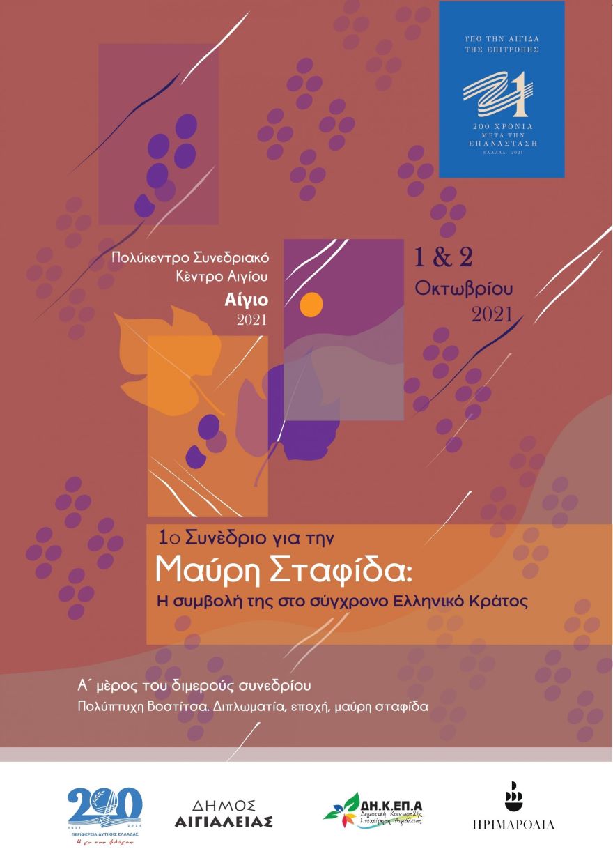 Ο Δήμος Αιγιαλείας, σε συνδιοργάνωση με την Δημοτική Κοινωφελή Επιχείρηση Αιγιαλείας ΔΗ.Κ.ΕΠ.Α. και τον οργανισμό Πριμαρόλια, διοργανώνει το πρώτο συνέδριο για την μαύρη σταφίδα, ένα διήμερο συνέδριο με τίτλο «Μαύρη σταφίδα: Η συμβολή της στο σύγχρονο ελληνικό κράτος», 1 και 2 Οκτωβρίου 2021, στο Πολύκεντρο συνεδριακό κέντρο Αιγίου.