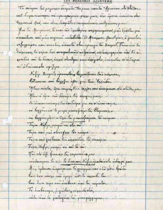 Ποίημα του Μενέλαου Λουντέμη αφιερωμένο στον Τούρκο ποιητή Ναζίμ Χικμέτ, ΑΣΚΙ / Αρχείο ΚΚΕ