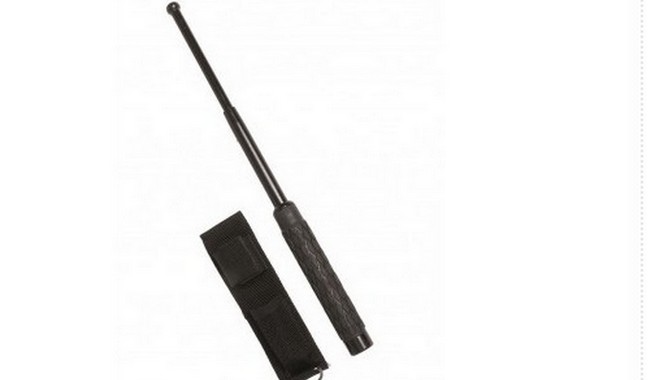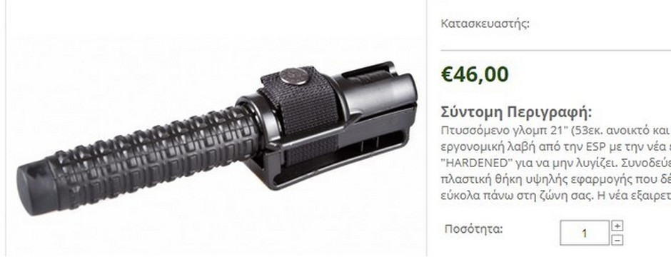 Παρακάτω: “Πτυσσόμενο γκλοπ 21 χιλιοστών κατασκευασμένο από υψηλής ποιότητας χάλυβα με αντιολισθητική λαβή. To Μεταλλικό γκλοπ συνοδεύεται από την δική του θήκη που δένει και προσαρμόζει εύκολα πάνω στη ζώνη σας” (η άνεση που λέγαμε παραπάνω).