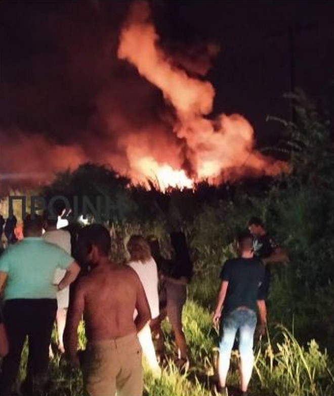 Στο διπλανό χωριό, το Παλαιοχώρι, ο Χρήστος Τσολακίδης έτρωγε έξω με παρέα φίλων, όταν άκουσε έναν έντονο θόρυβο. «Είδαμε μια φλόγα στον ουρανό, να χάνει ύψος και να συντρίβεται…», λέει και εξιστορεί πως επί δύο ώρες άκουγαν συνεχόμενες εκρήξεις, ενώ μια απροσδιόριστη έντονη οσμή σκέπαζε την ατμόσφαιρα.
